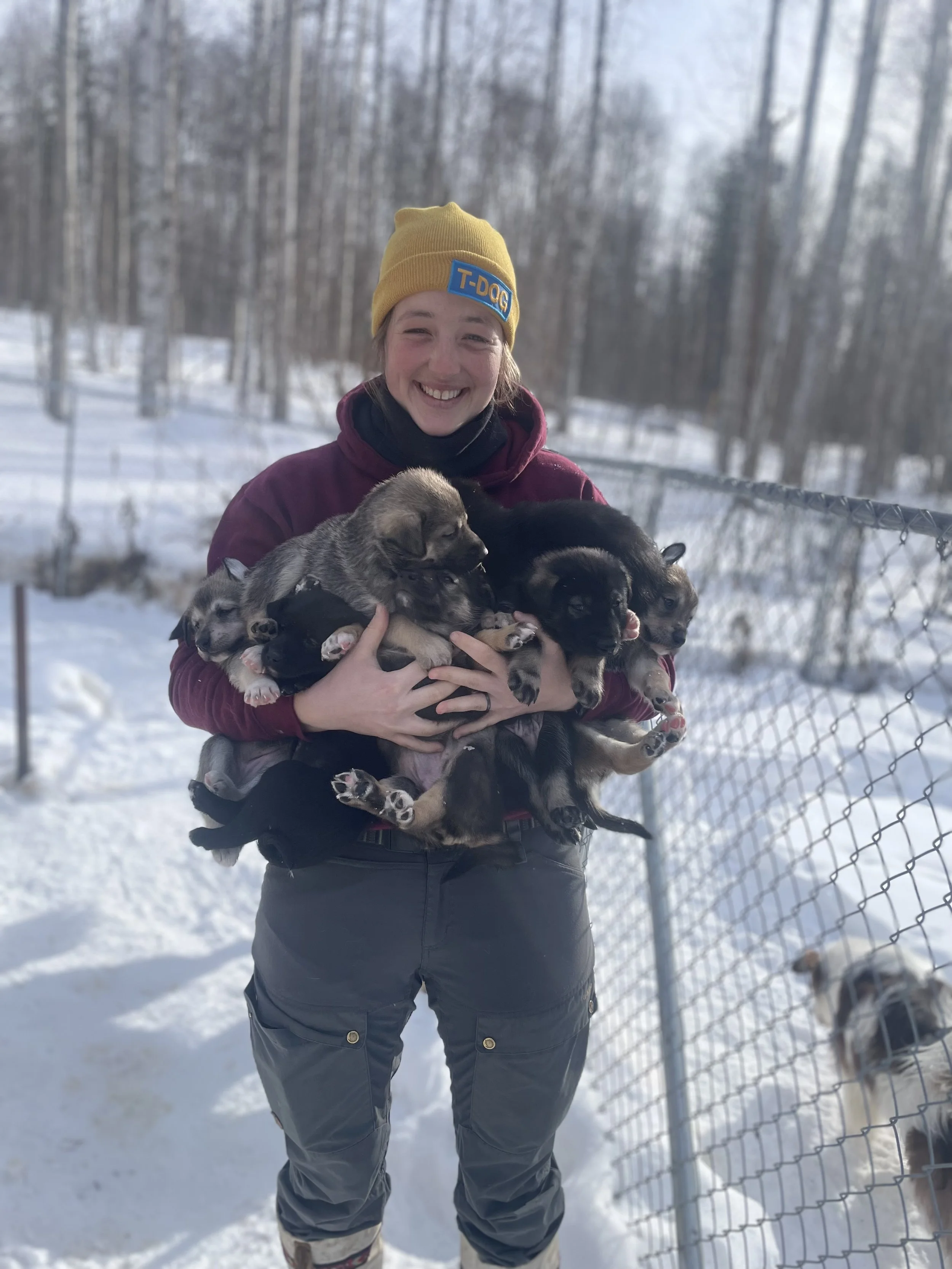 Bio: I'm originally from Utah, and after falling in love with Alaska as a teenager, I moved here in 2021 and immediately got hooked on mushing while volunteering at the NPS kennel in Denali. I started at Dallas' kennel in 2023 and am so excited for another winter with these dogs!