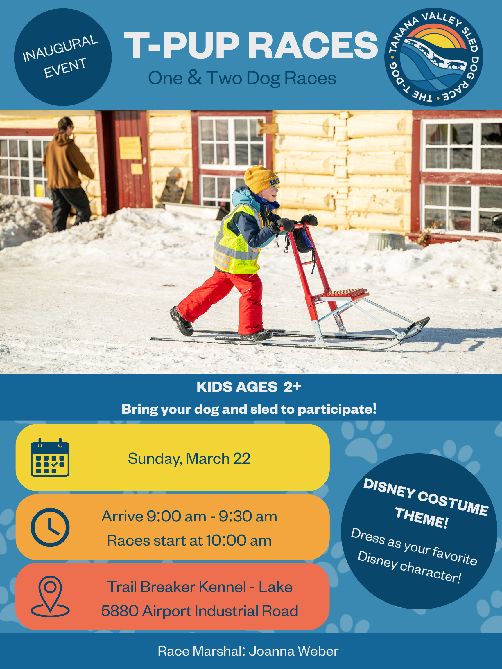Join us on Sunday, March 22 at Trail Breaker Kennel for one and two dog races designed for our youngest mushers.