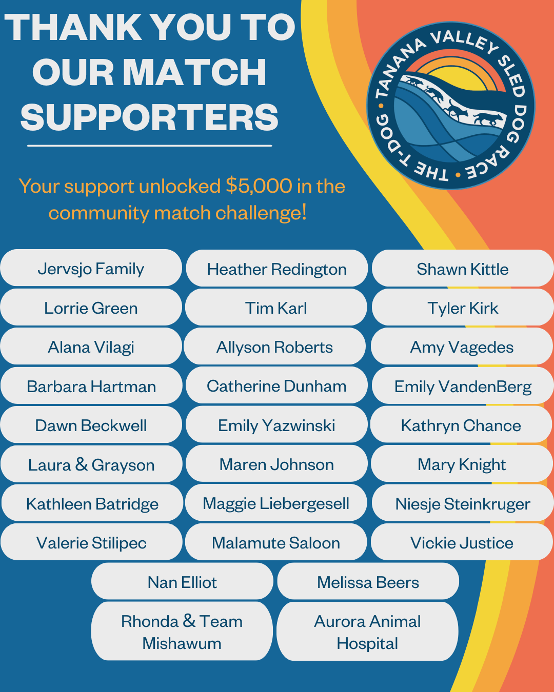 Over the last week, we asked the community to help unlock a $5,000 matching challenge and a $2,500 bonus challenge for the Tanana Valley Sled Dog Race in honor of Susan Butcher Day.